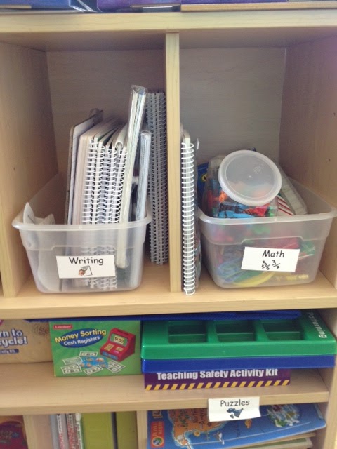 I also keep materials organized and stored by commonly covered topics.